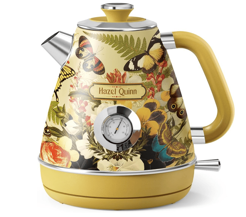 [Fast boiling & Large capacity] -Rated at 120 volts and 1,200 watts, the Hazel Quinn kettle can boil 1.7 liters of water in 4-5 minutes, up to 8 cups. Get ready to get enough drinks for your whole family.