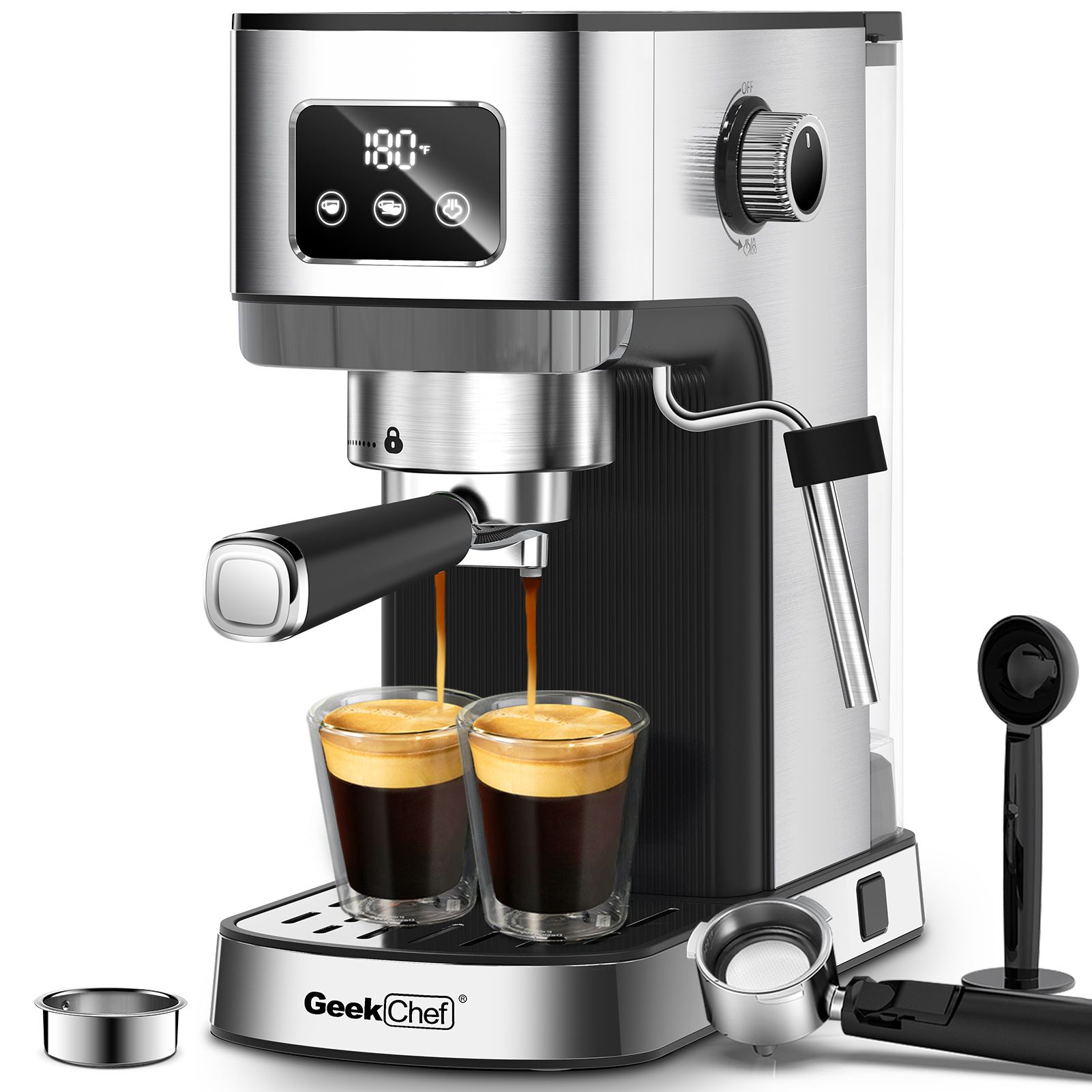 Home > Geek Chef Espresso Machine, Cappuccino & Latte Machine with ESE POD Filter & Milk Frother Steam Wand, Accurate Temperature & Time Control